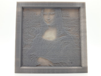 Ein flaches Lithophan mit Leonardos "Mona Lisa" oder unserem Logo. Lithophane sind dünne Reliefs die ihre Effekte erst im Gegenlicht erzeugen.
